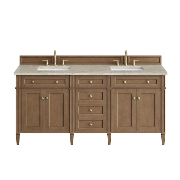 Brittany 72" Double Vanity, Pecan w/ 3 CM Tajnar Eclos Top