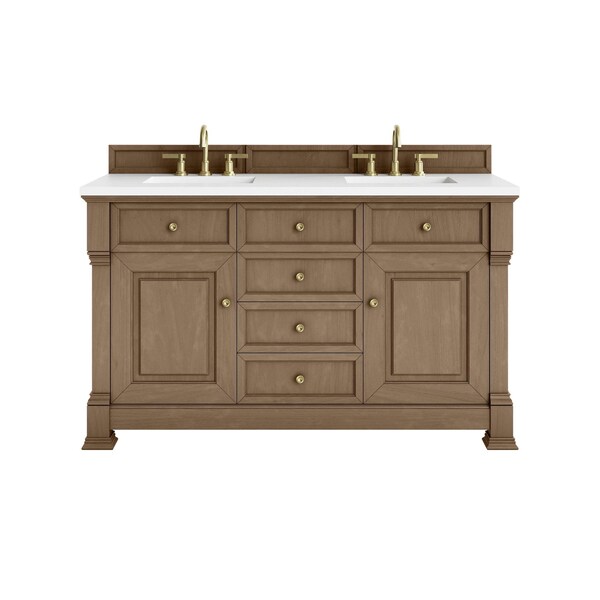 Brookfield 60 in. Double Vanity, Pecan, w/ 3 CM White Zeus Silestone Top