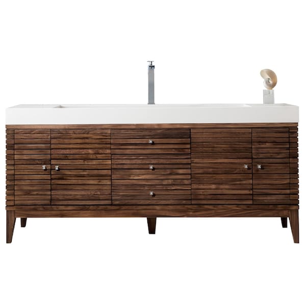 Linear 72in Single Vanity, Mid-Century Walnut w/ Glossy White Composite Stone Top