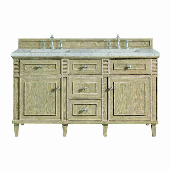 Lorelai 60in Double Vanity, Whitewashed Oak w/ 3 CM Eternal Jasmine Pearl Silestone Top