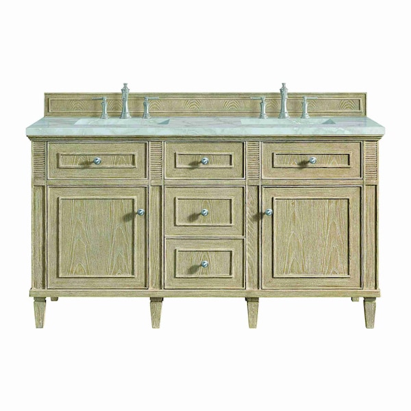 Lorelai 60in Double Vanity, Whitewashed Oak w/ 3 CM Victorian Silver Silestone Top