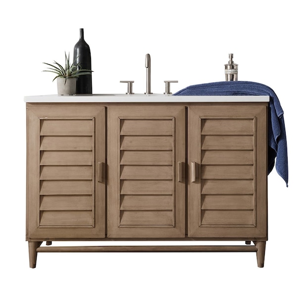 Portland 48in Single Vanity Whitewashed Walnut w/ 3 CM Arctic Fall Solid Surface Top (Discontinued)