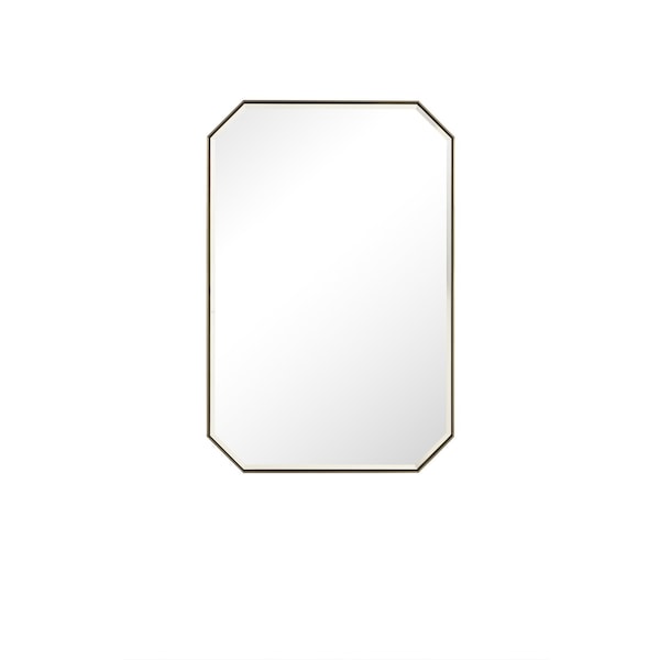 A minimalistic metal frame surrounds the beautiful 24in octagonal Rohe Bevel-cut mirror. Inspired by modern framed canvas art, the mirror appears as if it is floating inside the frame, adding visual interest. The design's simplicity, elegance, and neutrality of the Champagne Brass finish, make the Rohe mirror collection the perfect accent for your bathroom vanity and living spaces.