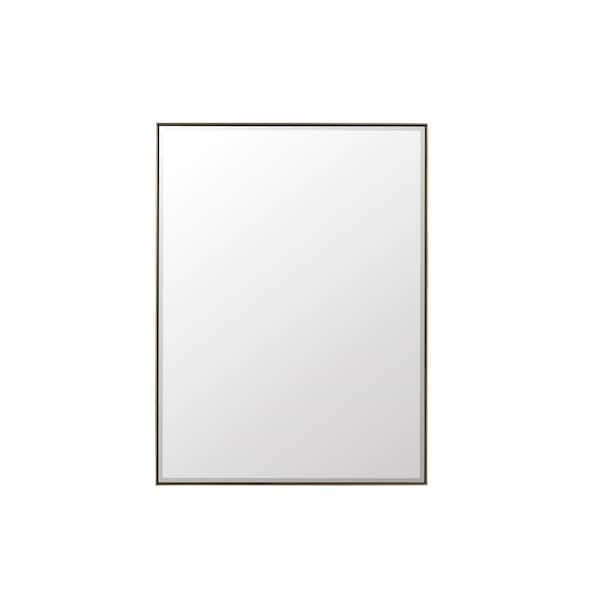 A minimalistic metal frame surrounds the beautiful 30in Rohe Bevel-cut mirror. Inspired by modern framed canvas art, the mirror appears as if it is floating inside the frame, adding visual interest. The design's simplicity, elegance, and neutrality of the Champagne Brass finish make the Rohe mirror collection the perfect accent for your bathroom vanity and living spaces.