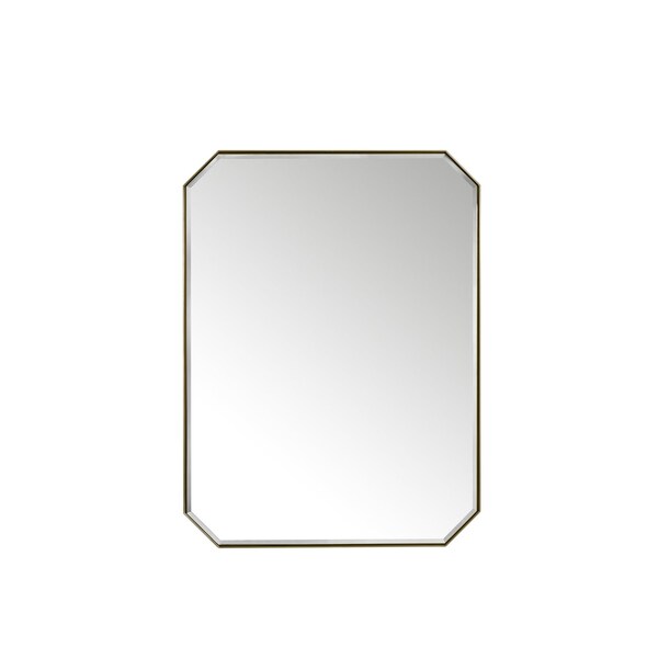 A minimalistic metal frame surrounds the beautiful 30in octagonal Rohe Bevel-cut mirror. Inspired by modern framed canvas art, the mirror appears as if it is floating inside the frame, adding visual interest. The design's simplicity, elegance, and neutrality of the Champagne Brass finish make the Rohe mirror collection the perfect accent for your bathroom vanity and living spaces.