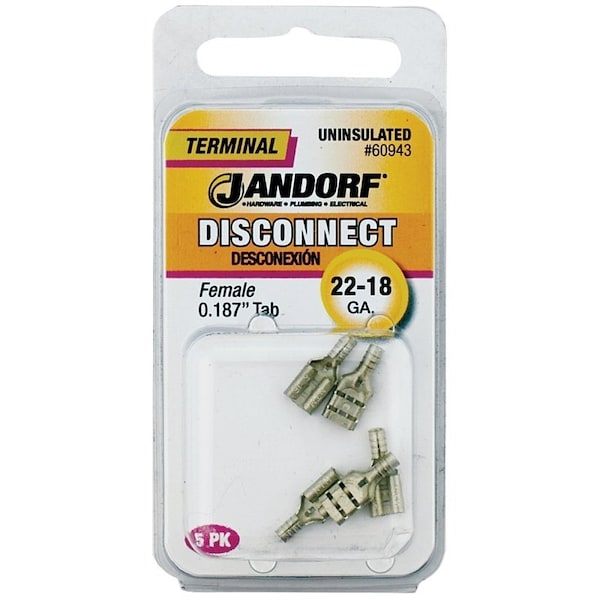 Jandorf Disconnect Terminal, 22 to 18 AWG Wire, Copper Contact, Tin Contact Coating