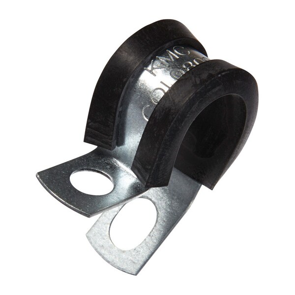 Steel clamps with a rubber cushion are used to secure, insulate and route hoses, wiring, tubing, pipes, and more. The clamps are furnished open to easily position the clamp over the tube or wiring, then close with a bolt to mount to a wall or other surface. The extruded black EPDM cushion protects from marring and corrosion and absorbs vibrations and shock. For medium duty applications, this type of clamp is especially well suited for non-insulated pipes.