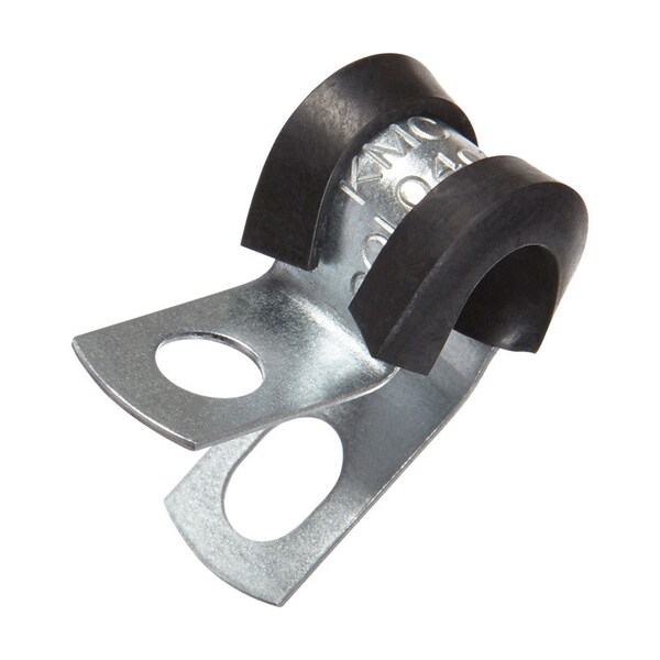 Steel clamps with a rubber cushion are used to secure, insulate and route hoses, wiring, tubing, pipes, and more. The clamps are furnished open to easily position the clamp over the tube or wiring, then close with a bolt to mount to a wall or other surface. The extruded black EPDM cushion protects from marring and corrosion and absorbs vibrations and shock. For medium duty applications, this type of clamp is especially well suited for non-insulated pipes.