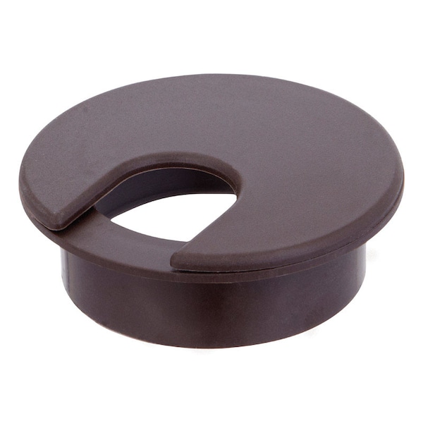 This walnut brown color desk grommet fits a 2 inch cutout hole. Used for cable management on a desk or countertop surface, the desk grommet organizes electrical cords, phone cords, computer cables and more.