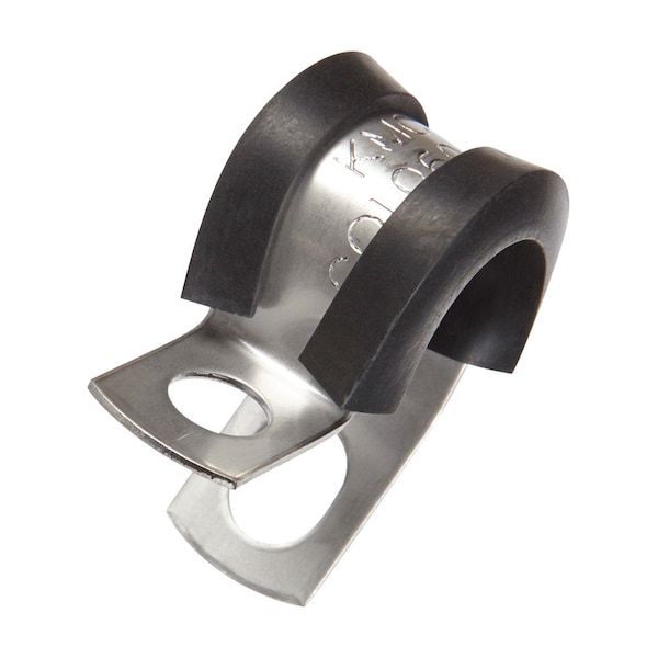 Stainless steel clamps with a rubber cushion are used to secure, insulate and route hoses, wiring, tubing, pipes, and more. The clamps are furnished open to easily position the clamp over the tube or wiring, then close with a bolt to mount to a wall or other surface. The extruded black EPDM cushion protects from marring and corrosion and absorbs vibrations and shock. For medium duty applications, this type of clamp is especially well suited for non-insulated pipes.
