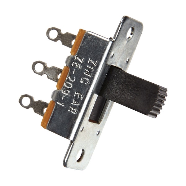 A slide switch has a slide-action actuator that makes or breaks the circuit contact when its position is changed. Single pole, double throw (SPDT) is a three terminal switch that controls two single-wire circuits, permitting only one circuit to be energized at a time. It is commonly used in pairs and sometimes called a three-way switch.