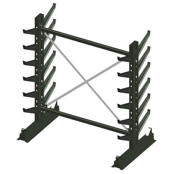 Cantilever Rack, Overall Depth 45 in, Overall Height 84 in, Overall Width 80 1/2 in, Load Capacity per Level 1,000 lb, Whole Unit Load Capacity 24,000 lb, Arm Gauge 10 ga, Arm Length 16 in, Arm Lip Height 1 3/4 in, Welded, Inclined, No, Number of Arms 24, Number of Usable Sides 2, Rack Configuration Starter, Rack Depth 45 in, Base Length 45 in, Center Brace Length 69 1/2 in, Column Gauge 11 ga, Medium-Duty, Enamel, Arms Adjustable on 4 in Centers, No, Steel