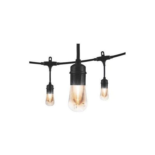 Enbrighten 24', 12 Bulb Count, Black, Vintage, LED Cafe Light Set, Changeable, Acrylic Bulb, IndoorOutdoor, Impact Resistant, Waterproof, 2200K Color Temperature, Flexible Mounting Options