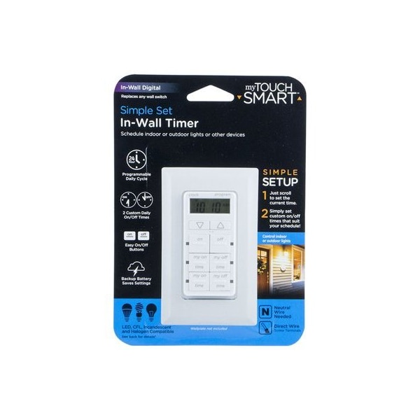 My Touch Smart, Indoor In Wall Digital Touch Timer, 2 Customizable Settings, OnOff Override, Countdown Feature, Automate Your Lights To Be On When You Need Them Most, Save Energy Money, Feel Secure