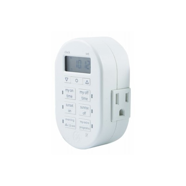 My TouchSmart, 1 Grounded Outlet, Indoor, Plug In Digital Timer, Simple Automation For Indoor Lighting Electronics, SunsetSunrise Options, Full 24 Hour Count Down Option, Programmable My OnOff Time Buttons Give You The Added Convenience To Set The Timer, SunSmart Automatically Follows The Sun Adjusts For Dusk Dawn Settings, Compatible With Compact Fluorescent Light, LED, Incandescent Halogen, CSA Listed,