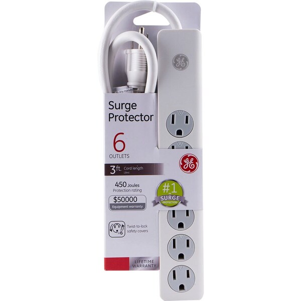 GE 3 ft. L 6 outlets Surge Protector White 450 J