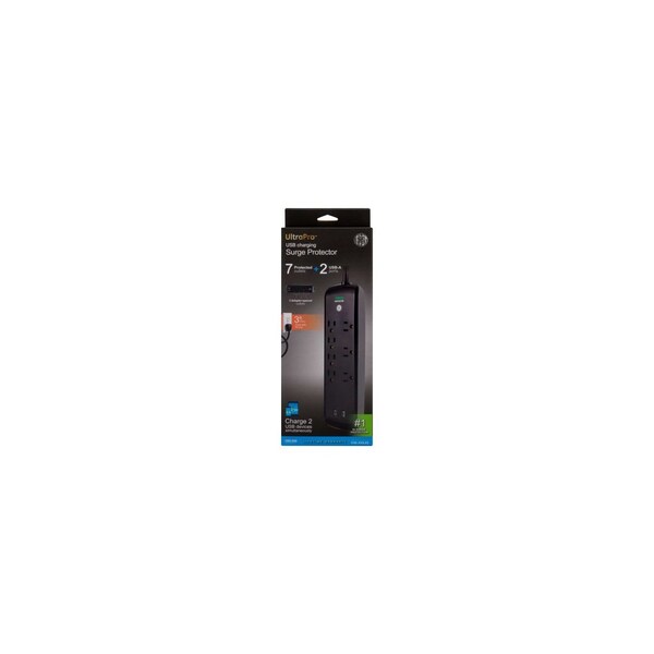 GE Surge Protector, 7 Outlet, 2 USB Ports, 2.1A, 1780J, 3ft, Black