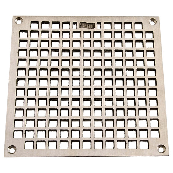 Grate, Product Type Grate, Overall Width 7 1/2 in, Overall Length 7 1/2 in, Material Nickel Bronze, Finish Nickel Bronze, Installation Type Screw-In, Color Silver, Grate Surface Type Square Holes, Shape Square, Includes Screws, Load Capacity 2,000 lb, ADA Compliant No, Overall Height 3/8 in, For Use with Drain Type Floor Drain, Drain Style Square, Standards ASME A112.6.3