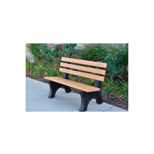 Frog furnishings recycled plastic 4 ft. Comfort park avenue bench, cedar bench/black frame this frog furnishings bench is manufactured by jayhawk plastics. It is made with seven 2 x 4 resinwood slats and black recycled plastic bases. Now with stronger and longer lasting stainless steel hardware. It is made with 100% recycled plastic that is environmentally friendly, maintenance free and vandal resistant.