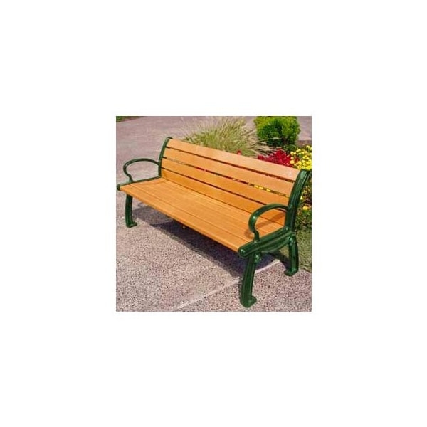 Frog furnishings recycled plastic 6 ft. Heritage bench, cedar bench/green frame this frog furnishings bench is manufactured by jayhawk plastics. It is made with nine 2 x 4 resinwood slats and powder-coated, heavy duty cast aluminum frames. The under structure is braced with length and width supports. Now with stronger and longer lasting stainless steel hardware. Bench frame includes hole for surface mount. Slats are made with 100% recycled plastic that is environmentally friendly, maintenance free and vandal resistant.