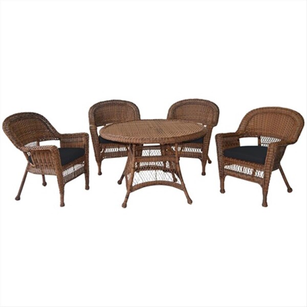 5 Piece Honey Wicker Dining Set - Black Cushions