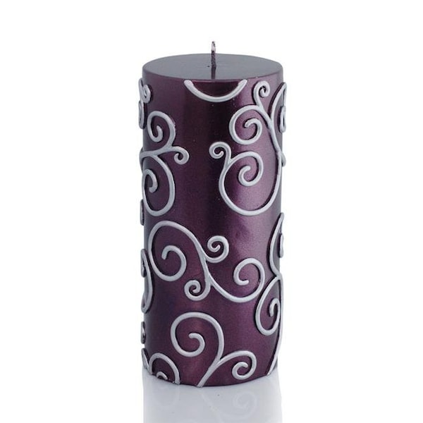 Jeco CPZ-110 3 x 6 in. Scroll Pillar Candle; Purple