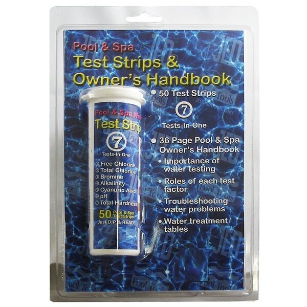 For pools and spas Just dip test strip in your pool or spa water for one sec and remove Strip gives instant results Tests for free chlroine, total chlorine, bromine, pH, total akalinity, hardness and stabilizer CYA Contains 50 strips and a 36 page pool owners handbook