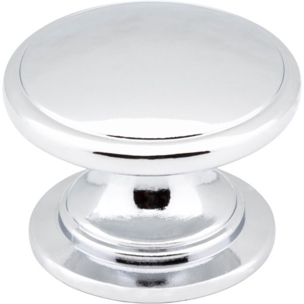 Durham's ringed 1-1/4" diameter Polished Chrome cabinet knob features an appealing yet simple shape that is sure to add traditional charm to your space. This Jeffrey Alexander knob is paired with an appealing barreled pull with similar ring detail available in four standard pull lengths and a 12" appliance handle. Offered in seven other finishes, this collection is designed to harmonize with various cabinet styles and finishes. Each item is individually wrapped to protect the item from damage. Attachment hardware is included.
