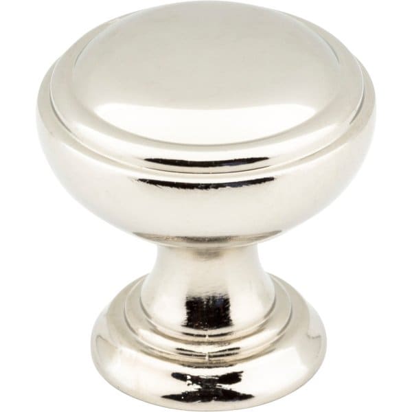 Tiffany combines a classically elegant shape with a transitional twist for a look that is timeless. This graceful 1-1/4" diameter Polished Nickel cabinet knob features step details accompanied by flowing curves for a comfortable feel in your hand. Combining this knob with five standard pull lengths and an appliance handle option makes this Jeffrey Alexander pull design a popular choice. Adding to the desirability, this knob is offered in seven stunning finishes, including both of our trending gold tones. Each item is individually wrapped to protect the item from damage. Attachment hardware is included.