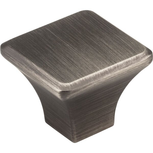 Jeffrey Alexander's Marlo blends a clean, square shape with a soft, chamfered edge, adaptable to any design scheme in any room. This square 1-1/4" overall length Brushed Pewter cabinet knob is available in two additional sizes and pairs confidently with five standard pull lengths as well as an appliance handle. The multitude of size options in both knobs and pulls, combined with four additional distinctive finishes to choose from, means this modern collection can accommodate almost any project. Each item is individually wrapped to protect the item from damage. Attachment hardware is included.