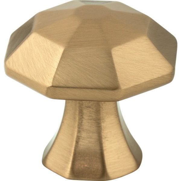 Controlled lines following a gentle contour result in an enchanting union of beauty and style in Wheeler. This octagon 1-1/4" overall length Satin Bronze Jeffrey Alexander cabinet knob pairs long lines with brilliant angles for an astonishing complement to transitional or traditional cabinetry. This knob is sure to dress up any kitchen, bath, or closet when paired with any of the three standard pull lengths ,or 18" appliance handle, in any of the seven finishes available. Each item is individually wrapped to protect the item from damage. Attachment hardware is included.