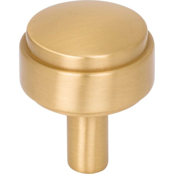 The pairing of industrial and elegant is one that is not often thought of, but that is what Hayworth precisely personifies! The simple yet exquisite 1-1/8" diameter Brushed Gold cabinet knob offers a clean design while providing a substantial profile through its stepped detail. Pair this Jeffrey Alexander knob with six coordinating pull lengths or a 2" cabinet "T" knob, in six crisp finishes, to enhance any contemporary design scheme. Each item is individually wrapped to protect the item from damage. Attachment hardware is included.