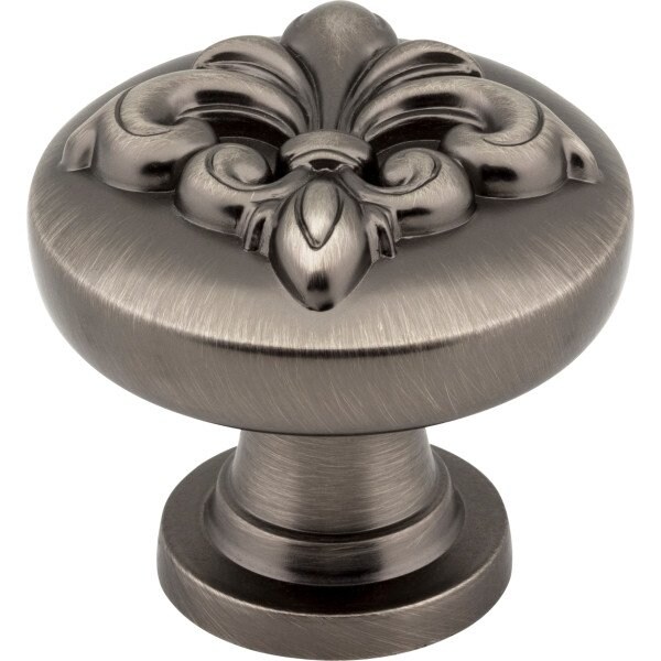Let your decorative side shine through with the French elegance of Lafayette by Jeffrey Alexander. This noteworthy 1-3/8" diameter Brushed Pewter cabinet knobs offers a very prominent fleur-de-lis design on its simple shape. Three standard pull lengths and an appliance handle are the perfect complement to this brilliantly styled knob, available in four captivating finishes. Each item is individually wrapped to protect the item from damage. Attachment hardware is included.