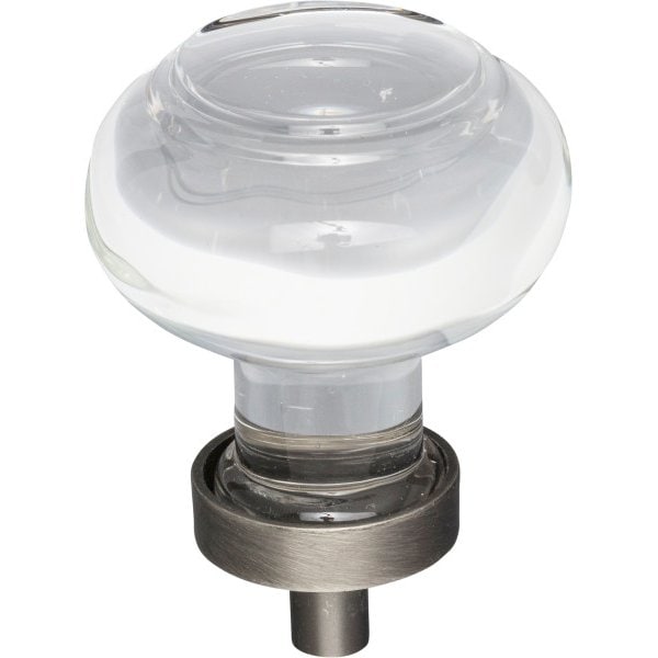 1-7/16" Diameter Brushed Pewter Button Glass Harlow Cabinet Knob
