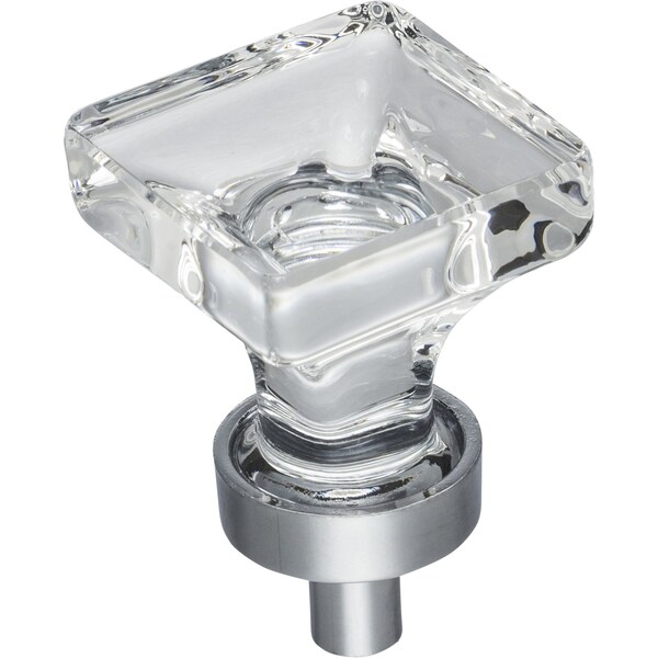 Recalling the glamorous era of Old Hollywood, Harlow glass knobs add excitement and radiance to any kitchen, bath, or closet. This opulent 1" overall length Polished Chrome square shape cabinet knob, also available in a larger size, adds a touch of modern elegance to any space. This Jeffrey Alexander collection offers four finish options, meeting both traditional and transitional design needs. Each item is individually wrapped to protect the item from damage. Attachment hardware is included.