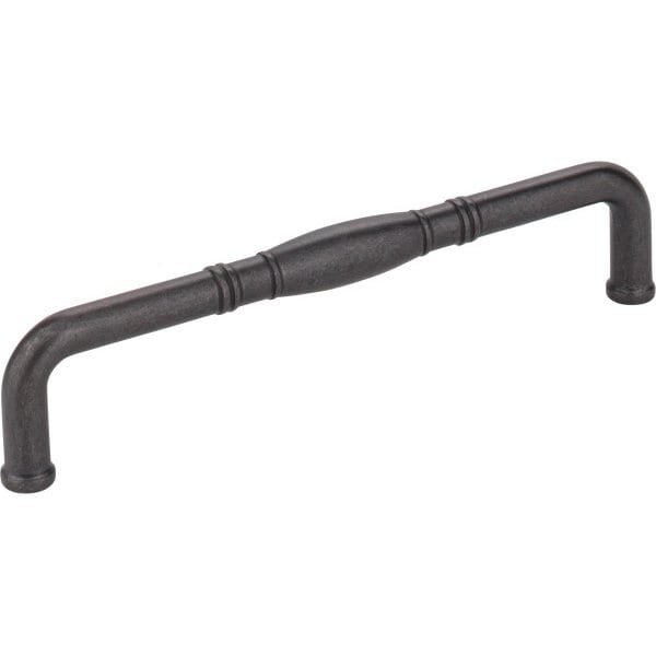 Durham's 6-3/4" overall length Gun Metal cabinet pull features an appealing yet simple barrel shape that is sure to add traditional charm to your space. This Jeffrey Alexander pull is available in three additional standard pull lengths, 12" appliance handle and coordinating ringed mushroom knob. Offered in eight varying finishes, this collection is designed to harmonize with various cabinet styles and finishes. Each item is individually wrapped to protect the item from damage. Attachment hardware is included.
