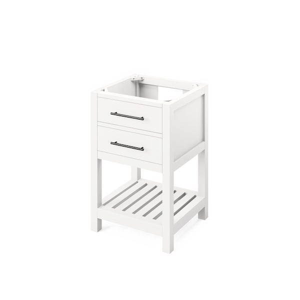Escape to the seaside with the Wavecrest vanity. Crisp, clean edges and a slatted bottom shelf evoke a coastal calm feeling. False front drawers are transformed into hidden tipout storage space with solid hardwood custom sized tipout trays. Beneath the tipout storage is a solid hardwood dovetail drawer with full extension soft-close undermount slides. White vanities are adorned with Matte Black pulls, Grey vanities with Satin Nickel pulls; and Hale Blue and Forest Green with Satin Bronze pulls. Top and rectangular porcelain bowl are included but not assembled. See our video in the Highlights section for more information. The included top has three holes cut for an 8” widespread faucet, and a 4” tall backsplash is included. The vanity top is designed to overhang 1/2" on each side of the vanity.