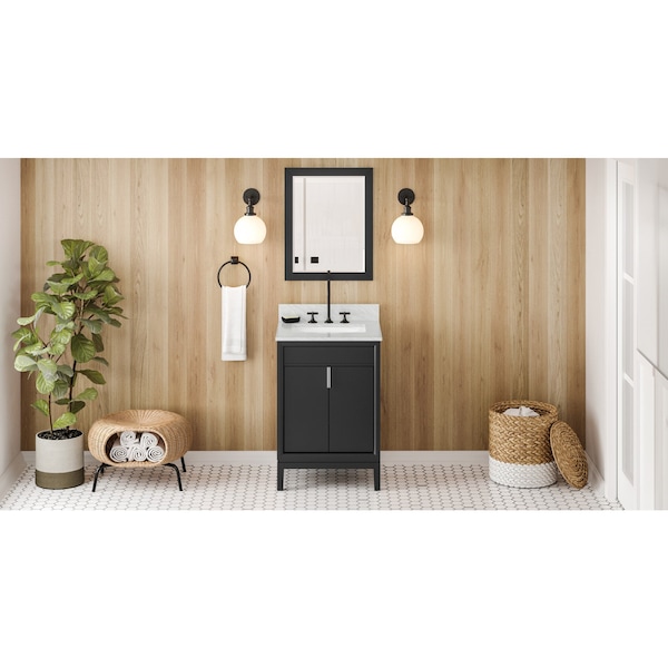 24In. Black Theodora Vanity, White Carrara Marble Vanity Top, Undermount Rectangle Bowl