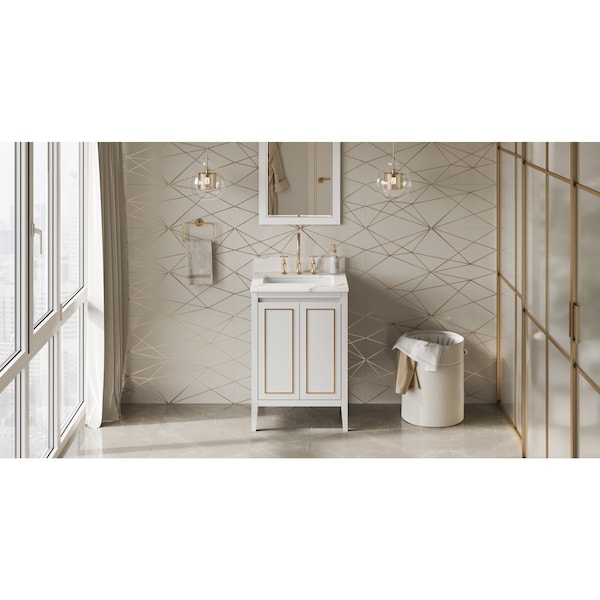 24In. White Percival Vanity, Calacatta Vienna Quartz Vanity Top, Undermount Rectangle Bowl