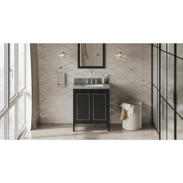 30In. Black Percival Vanity, Steel Grey Cultured Marble Vanity Top, Undermount Rectangle Bowl