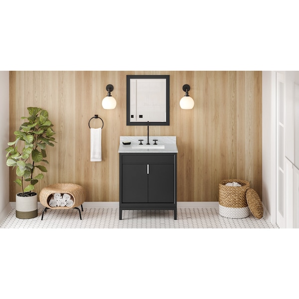 30In. Black Theodora Vanity, White Carrara Marble Vanity Top, Undermount Rectangle Bowl