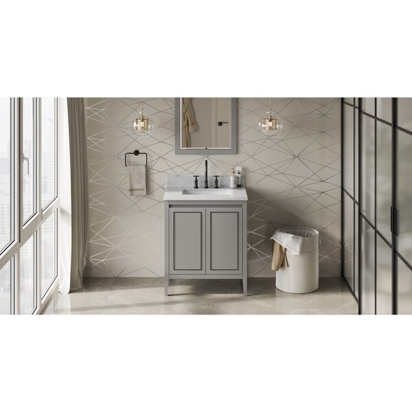 30In. Grey Percival Vanity, White Carrara Marble Vanity Top, Undermount Rectangle Bowl