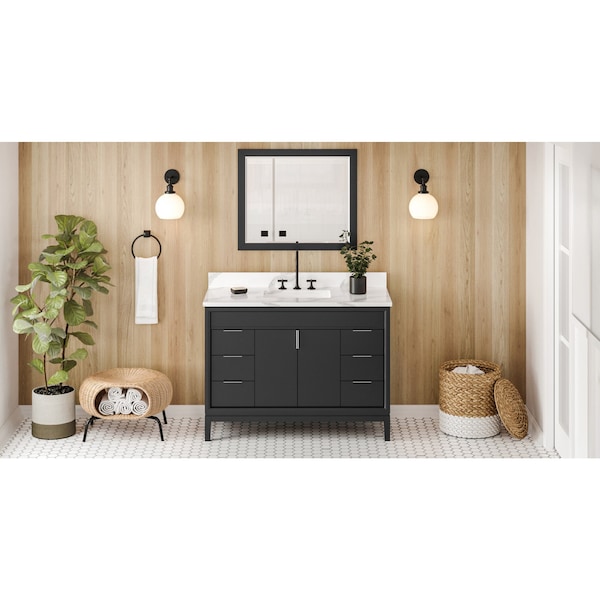 48In. Black Theodora Vanity, Calacatta Vienna Quartz Vanity Top, Undermount Rectangle Bowl
