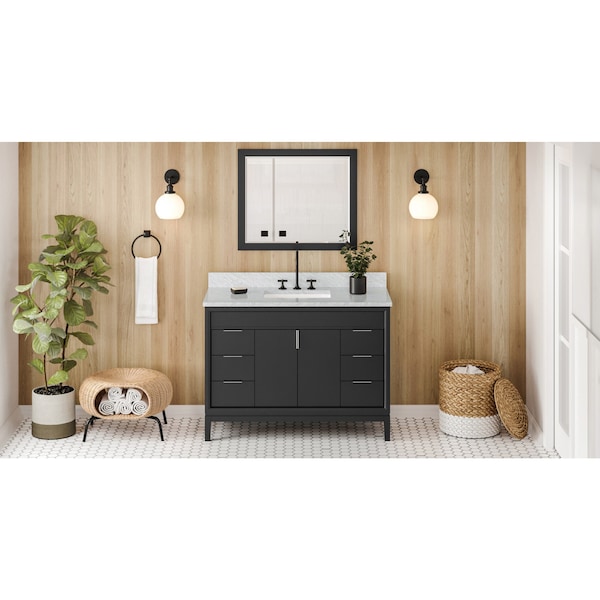 48In. Black Theodora Vanity, White Carrara Marble Vanity Top, Undermount Rectangle Bowl