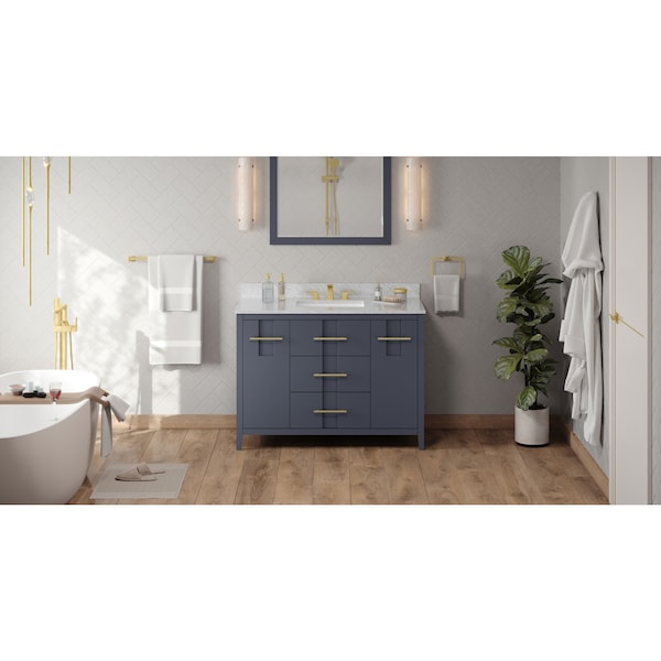 48In. Blue Steel Katara Vanity, White Carrara Marble Vanity Top, Undermount Rectangle Bowl
