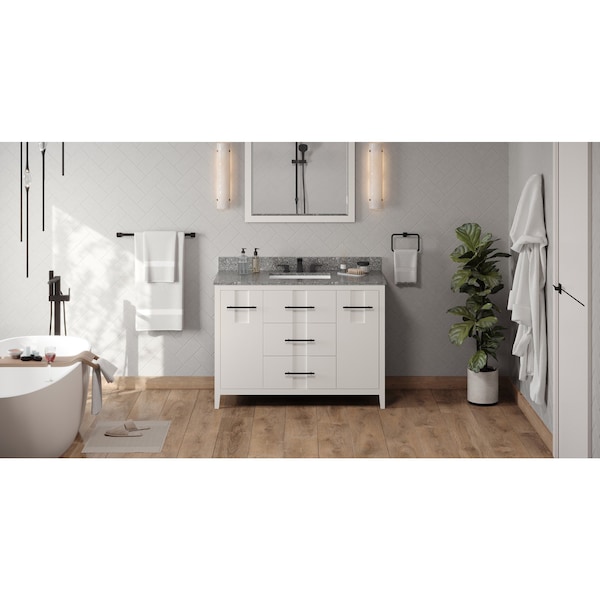 48In. White Katara Vanity, Boulder Cultured Marble Vanity Top, Undermount Rectangle Bowl