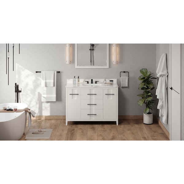 48In. White Katara Vanity, Calacatta Vienna Quartz Vanity Top, Undermount Rectangle Bowl