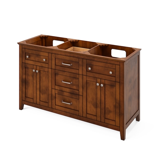 60" Chocolate Chatham Vanity, double bowl, Black Granite Vanity Top, two undermount rectangle bowls