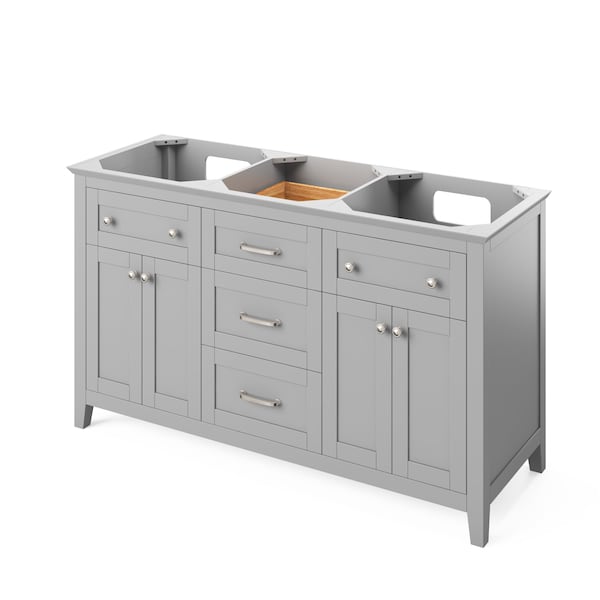 60" Grey Chatham Vanity, double bowl, Black Granite Vanity Top, two undermount rectangle bowls