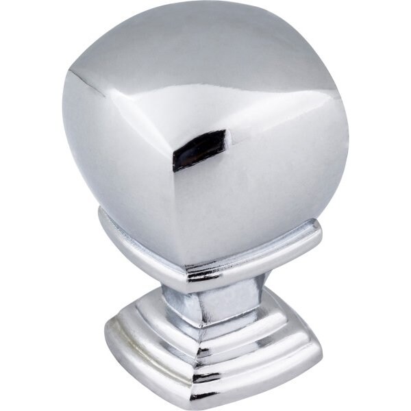 Katharine by Jeffrey Alexander brings a bit of dramatic glamour to any home. Harkening days of Old Hollywood, this alluring and curvaceous rounded square knob sits atop of stacked square feet. This petite 7/8" overall length Polished Chrome Jeffrey Alexander cabinet knob is also available in a 1" option to find the perfect fit with any design. Three coordinating standard pull lengths, featuring a higher hand clearance which is a great option for Aging in Place, are available to pair with this unique knob. Choose from four classic finishes to complete any traditional or transitional space. Each item is individually wrapped to protect the item from damage. Attachment hardware is included.